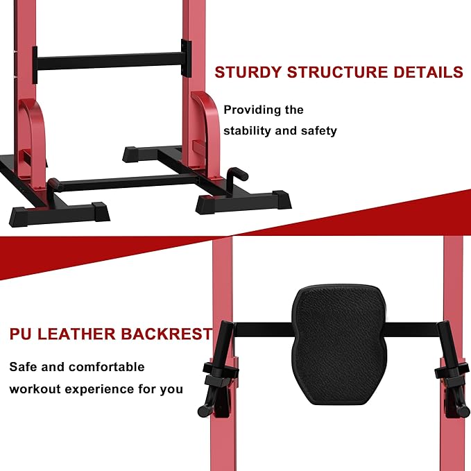 - 💪【STURDY STRUCTURE】The power tower is made of thickened upgraded oil tube with a load capacity of up to 400LBS. forming 4 reinforced support points, increasing the contact area and friction, and providing double stability.