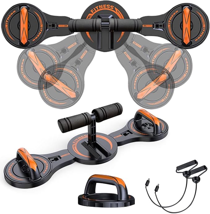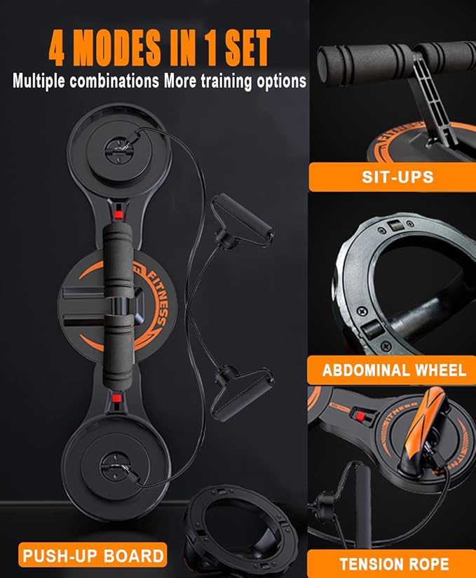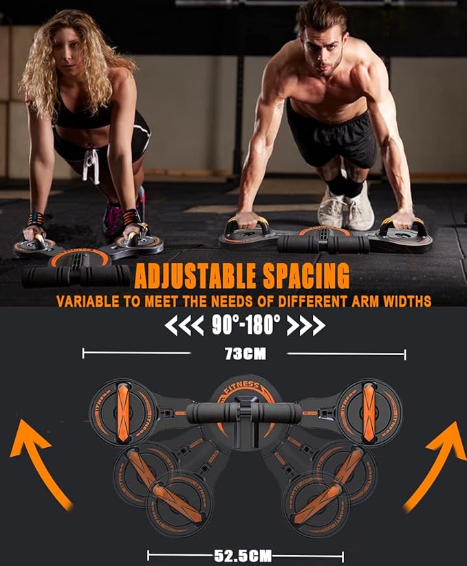 - ALL-IN-ONE HOME GYM EQUIPMENT SYSTEM: MAXRICH push-up plates 4-in-1 set. Set of push-up plates, elastic rope, sit-ups, abs wheel in one, saving you expensive gym fees but meet most of your fitness needs in the gym.