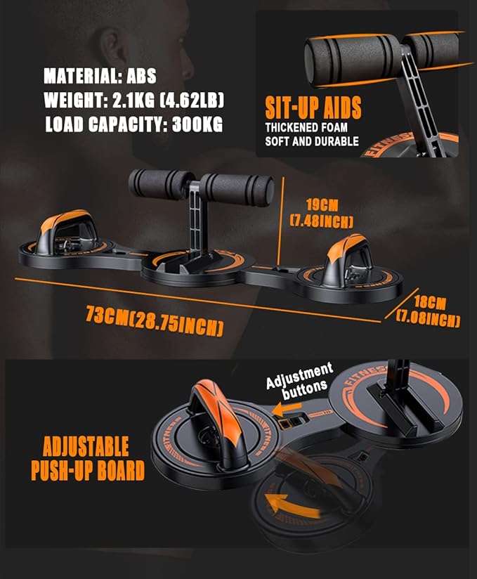 - DETAILS ARE DESIGNED TO BE SAFER AND MORE DURABLE:The bottom of the push-up board is designed with oversized suction cups for multi-purpose use in sit-up exercises, strong suction can be applied to most smooth surfaces on the floor, but please note: the sit-up function board does not work on uneven/joint/carpeted floors because they cannot generate suction! The bottom is also equipped with shims to protect the floor from wear and tear.