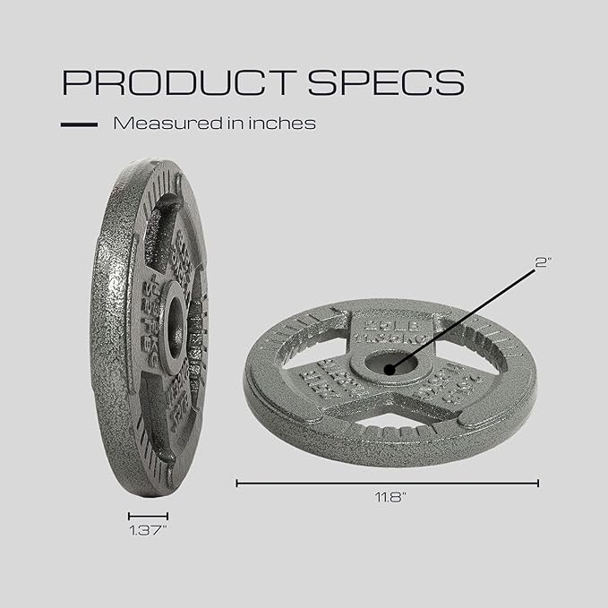 - Purpose - Increase overall health and fitness with our multi-grip 1 inch and 2 inch Cast Iron Weight Plates, which is a must have for any home or garage gym set up. Our Cast Iron strength training plates are coated with enamel to help prevent the potential of corrosion and rust.