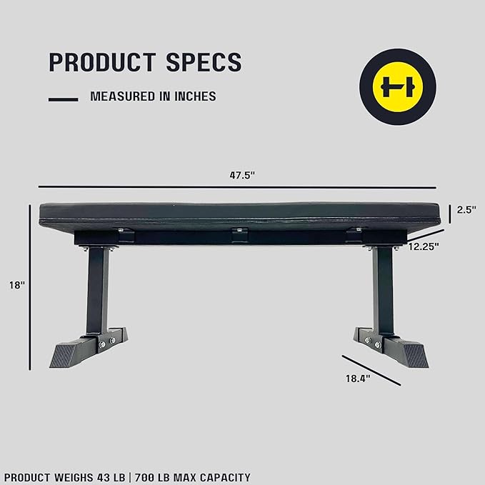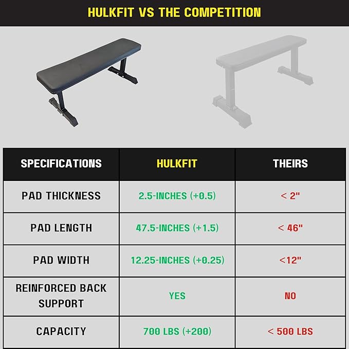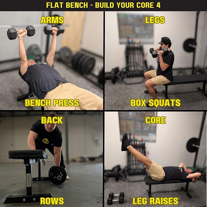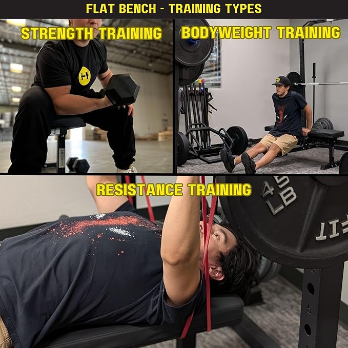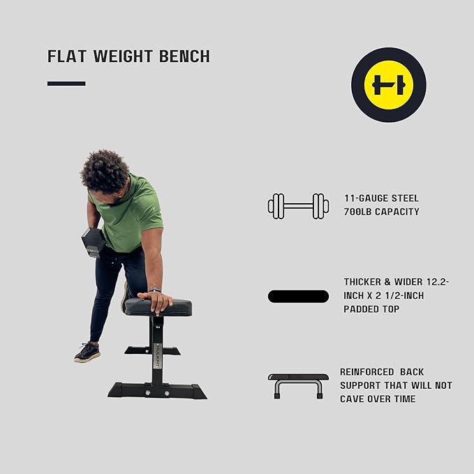 HulkFit Heavy-Duty Flat Workout Weight Bench & Adjustable