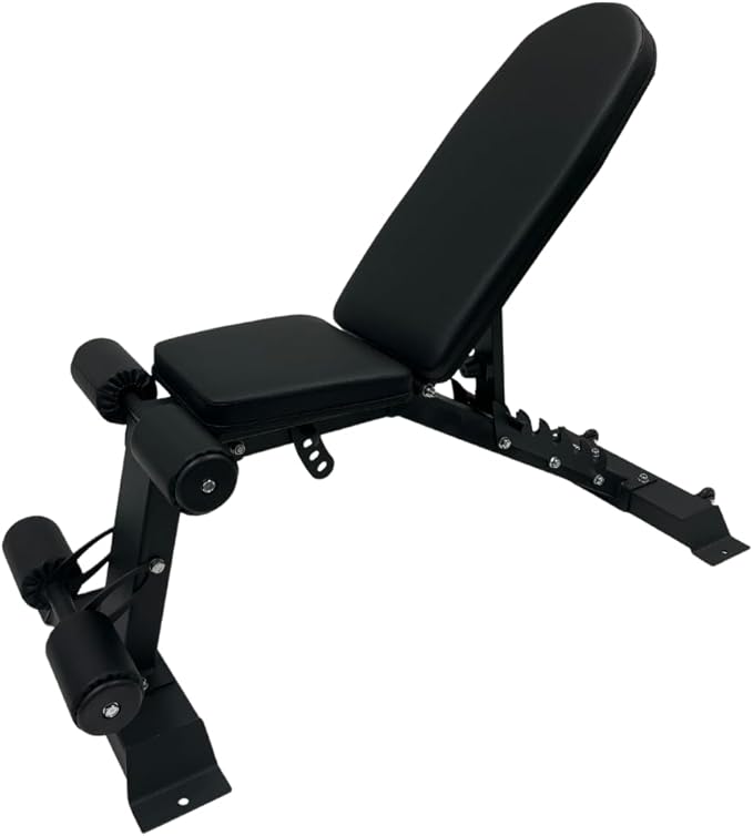 - Purpose - Upgrade your home gym with our Adjustable Weight Bench and features a high-density foam pad on the seat and backrest. This dynamic bench has 6 lockable positions from 180° flat to an upright position. Leg pads help anchor your lower body.