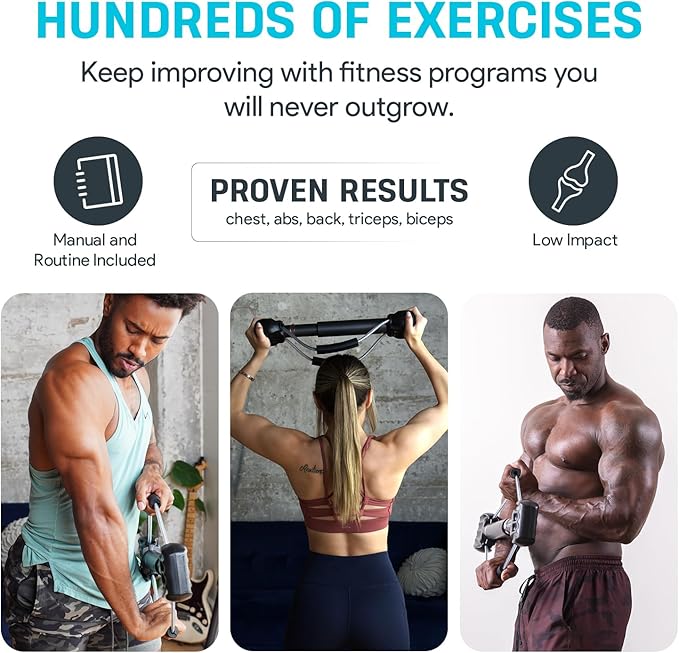 - Low-Impact Full Body Workout - Joint-friendly bicep workout, back workout, ab trainer, leg, arm, shoulder & chest workout equipment for men & women with an adjustable resistance between 0-130lbs - the perfect portable gym gear for all fitness levels