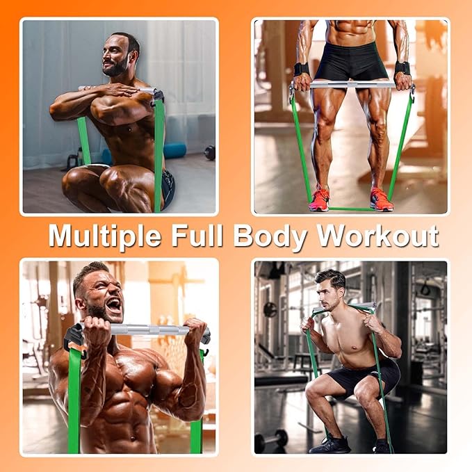- Full body workout: Our resistance band bar set is designed to provide a complete full-body workout experience. It is perfect for various exercises such as deep squats, chest presses, bench presses, military presses, upright rows, tricep push downs, bicep curls, leg lifts, hard pulls, dips, and more. It offers versatility and allows you to target multiple muscle groups effectively.