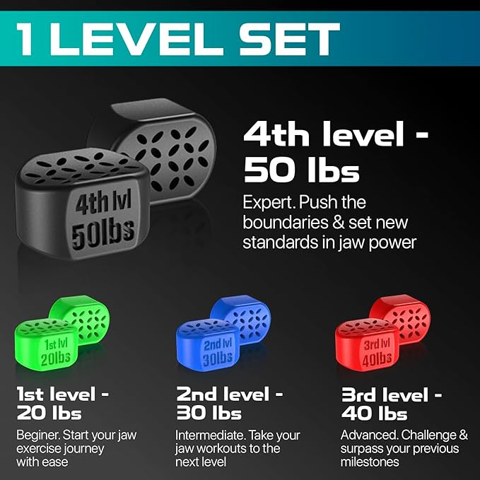 - 1-Pack Set: Includes 2 pcs & 1 resistance level (Black: 50 lbs). Allowing you to customize your workout and gradually increase the intensity as your jaw muscles grow stronger. Exercise & progress at your own pace! Jaw strengthener.