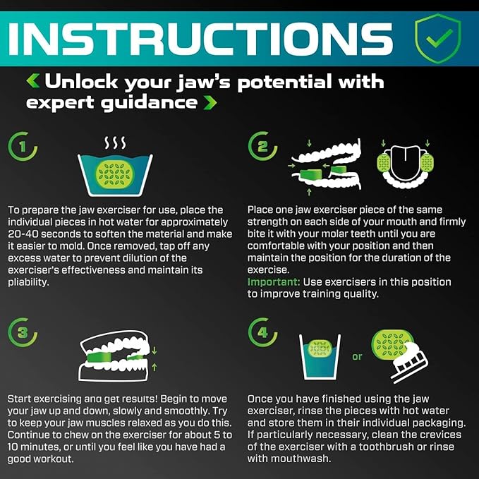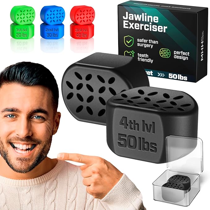 - Effective Jawline Sculpting: Our jaw workout set is specifically designed to target and tone the muscles around your face, helping you achieve a more defined and confident appearance. With just a few minutes of jaw gum each day, you can strengthen and tighten your smile, saving you valuable time while achieving noticeable results. Ejercitador de mandibula.