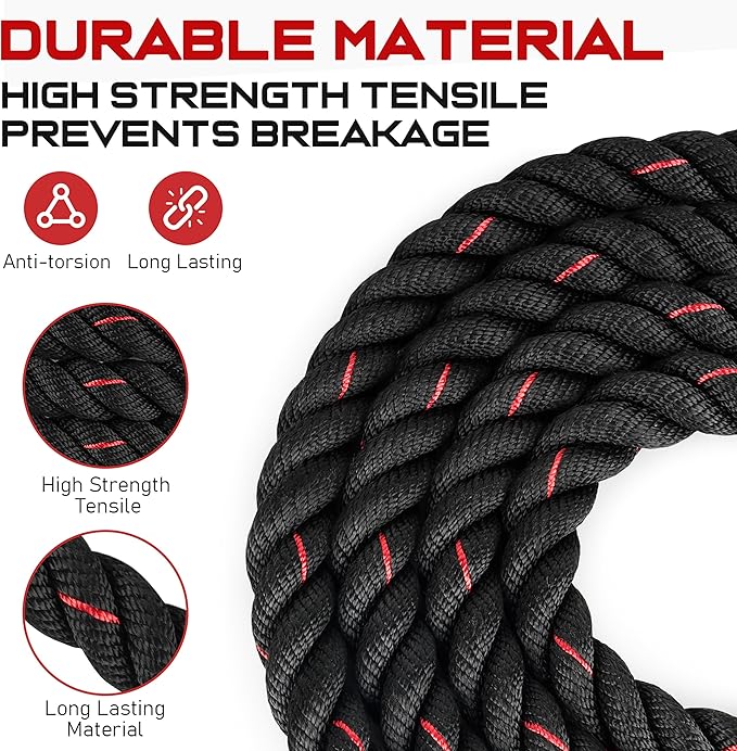 - ”Durable Material, Premium Quality“: Our exercise skipping rope is made of polymer synthetic fiber with high tensile strength to prevent tearing during continuous use. Heavy-duty jump ropes are woven from multiple strands of fiber material and are designed to be heavy and durable, with reliable and long-lasting performance so you can focus on your workout