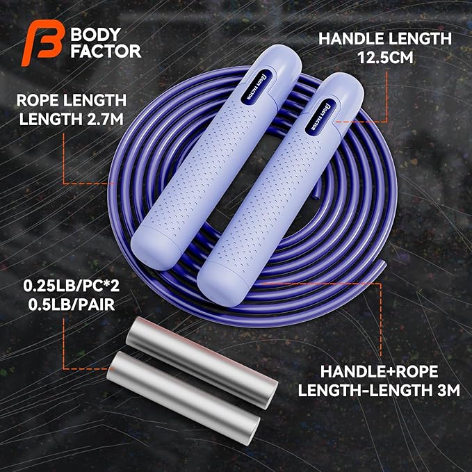 - ✅ Weighted handles (12 oz. each) for more calorie burn and faster results: This stylish weighted fitness jump rope is the perfect tool for cardio and endurance workouts, burning calories, and increasing agility wherever you are.