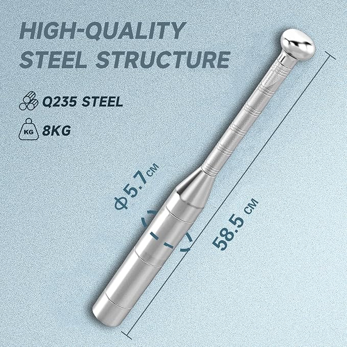 - Built with Durable Q235 Steel: Our All Steel Indian Clubs are crafted from heavy-duty Q235 steel, ensuring they withstand your toughest workouts. Each club is meticulously designed for long-lasting durability under rigorous use.