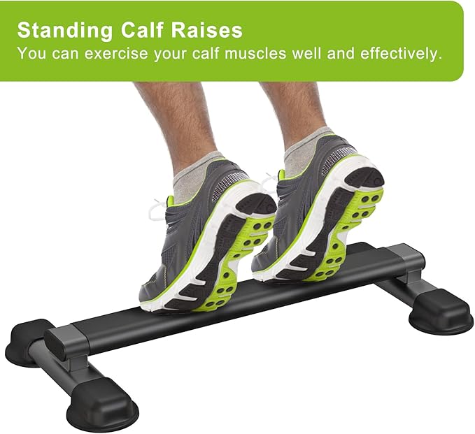 - 【Safe and Stable】The Calf Raise Bar comes with four non-slip foot pads that prevent it from sliding and ensure your stability. The foot pads also protect the floor from scratches and damage.
