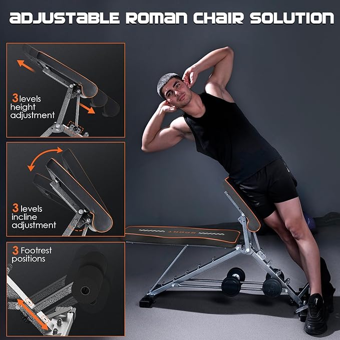 - Multi-functional Weight bench Design: Kuyou weight bench incorporates a two-in-one design, Switch freely between Roman chair and weight bench, allowing for standard weight bench use as well as abdominal training on the Roman chair to meet diverse workout needs.