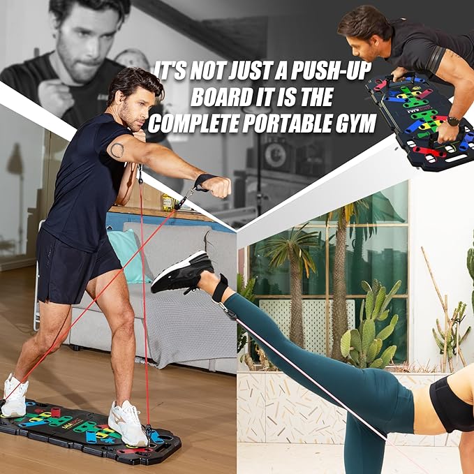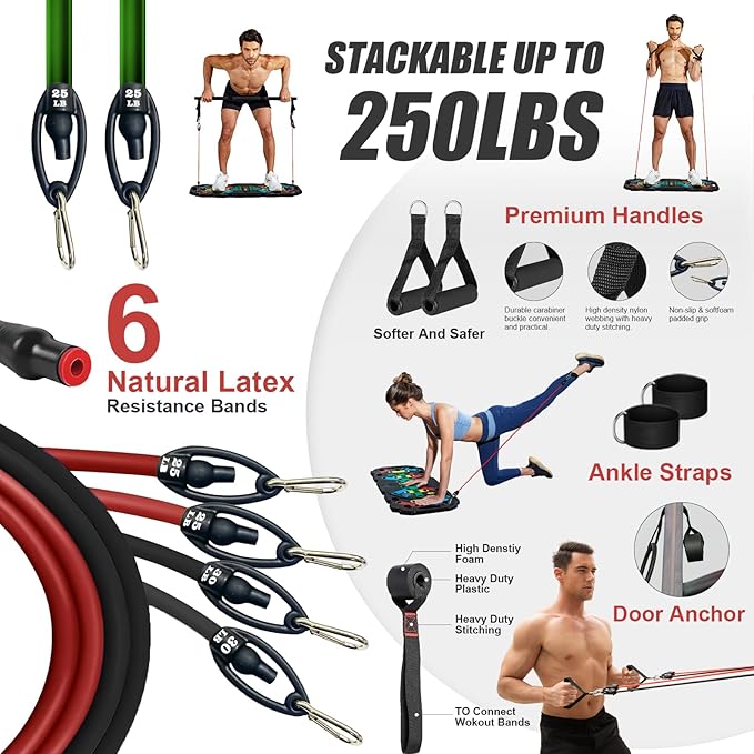 - Professional Workout Kit: Elevate your fitness game at home with a color-coded pushup board and resistance bands set. Versatile workouts for strength, resistance, and cardio—all in one kit.