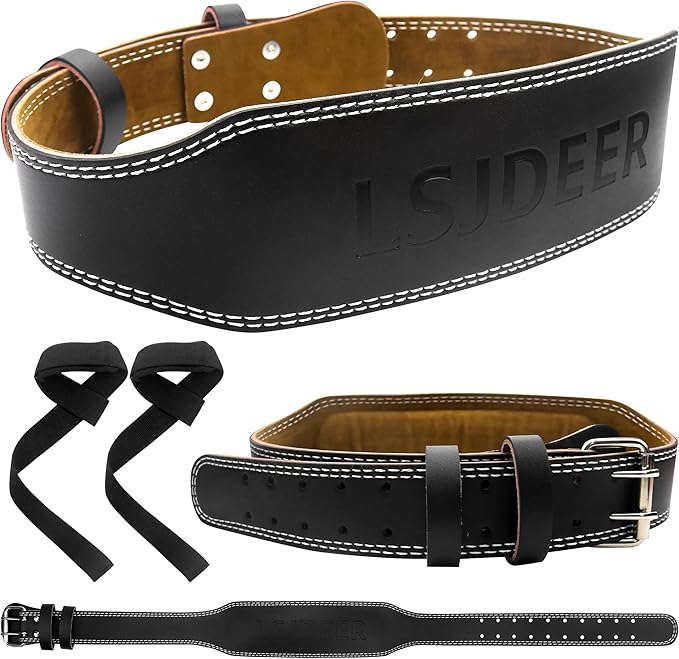 - Perfect Design: Made from leather and the 8 mm thick weightlifting belt that is hard to break and tear. The design of stainless steel buckle Each belt is reinforced with 6 stainless steel rivets and uses fine stitching technology - double-layer sewing; each belt has 10 rows of holes that will be free to adjust the waist circumference and feel comfortable.