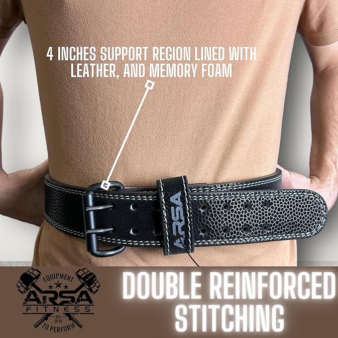 - 1. PREMIUMSKINZ LEATHER: Arsa Fitness's weightlifting belt is constructed from high-quality genuine leather, ensuring durability and long-lasting performance. With a unique skin that makes this belt stand out.