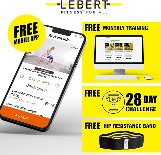 - FREE MOBILE APP, FREE LIVE TRAINING & FREE ACCESS TO FITNESS PROFESSIONALS: When you buy the EQualizers you automatically become a member of the Lebert community which unlocks FREE options, so you get the most out of your EQualizers. Access tutorials an workouts anywhere with the Lebert Mobile App, test yourself with the 28-Day EQualizer Challenge with Founder Marc Lebert or our Monthly Live Training session. Get access to Fitness Professionals via our Private Facebook Group and ask whatever