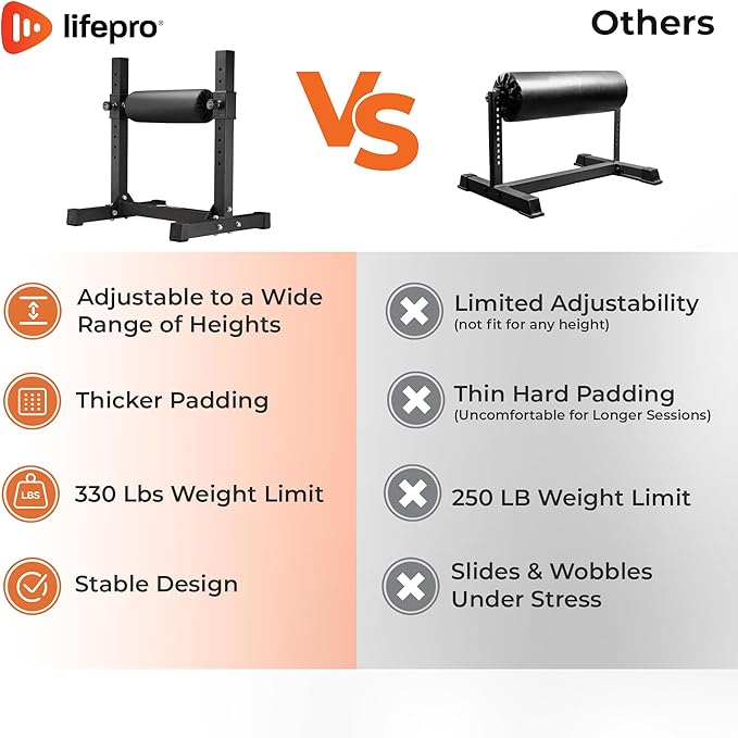 - 7 ADJUSTABLE HEIGHT LEVELS - Adjust the single leg squat roller to one of the 7 height levels on the Bulgarian Split Squat Stand & tune your workout to your body's needs, maximizing safety & comfort!