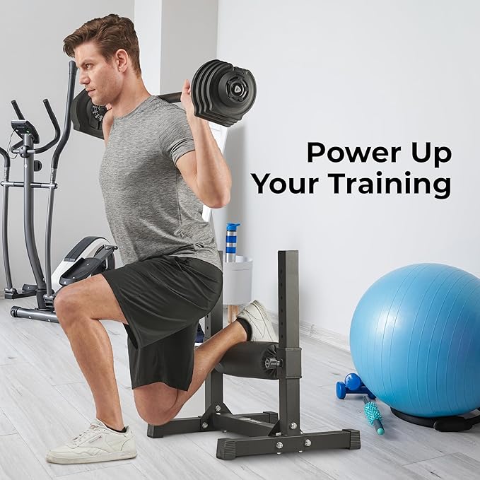 - DURABLE, LIGHTWEIGHT & STABLE DESIGN - Weighing in at 13 lbs & made of durable powder-coated carbon steel the split squat stand handles up to 330 lbs without slipping or bending, even under pressure.