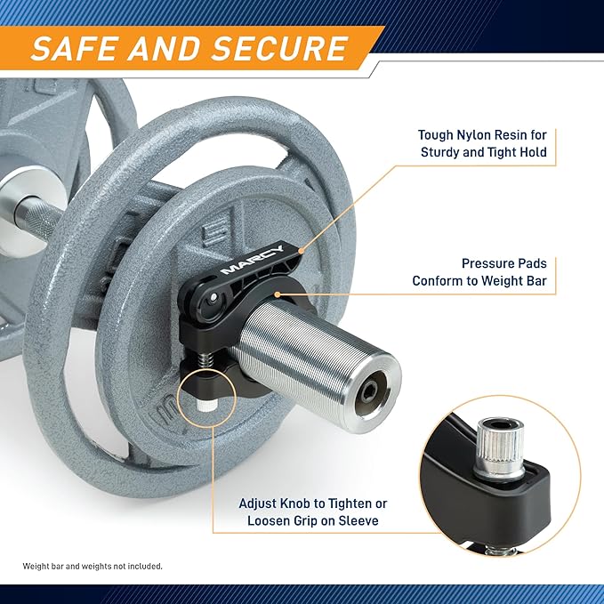 - Easy to Take to any Workout: Don't hesitate to take your Marcy Olympic Lock Collar Clips to the gym or to any place you workout for a safe and secure workout!