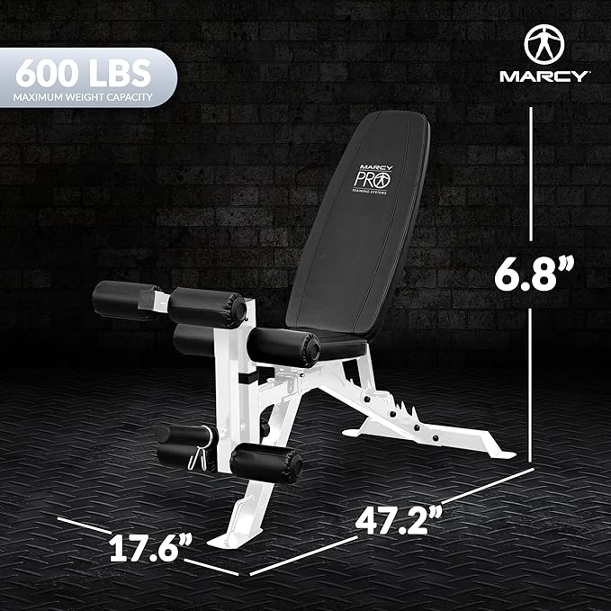 - Weight Capacity and Dimensions: Supports a max weight capacity of up to 600 lbs, offering dimensions of 47.2" L x 17.6" W x 6.8" H, with added leg extension for lower body workouts