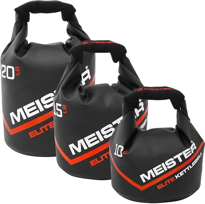 - Included 10lb, 15lb & 20lb portable sand kettlebells fit snuggly inside. Kettlebells can be easily removed for separate freeweight exercises