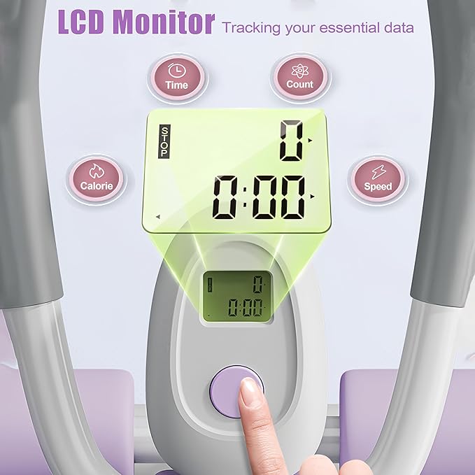 - 【Digital LCD Display and Easy Storage】: The digital LCD display tracks calories, workout time, and repetitions, while the foldable design allows for easy storage under the bed or against the wall, saving space.