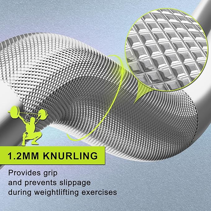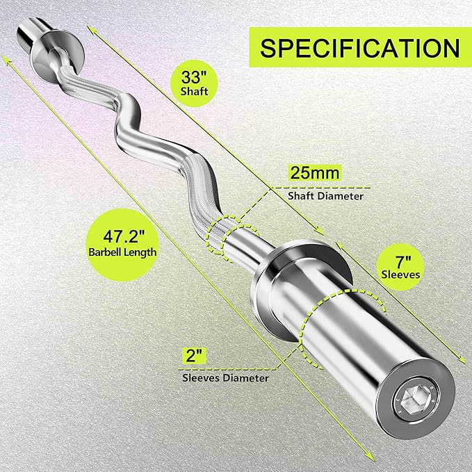 - Compatibility with Weight Plates: The bar features sleeves with a diameter of 2 inches, specifically designed to accommodate 2-inch weight plates. This standard size ensures that users can easily load and secure their desired weight increments onto the bar without any compatibility issues.