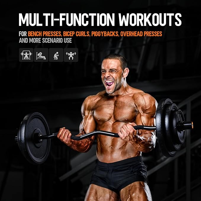 - EXERCISE MULTI-POSITION MUSCLES - Our EZ curl bar is helpful for biceps, triceps, abdominal muscles, etc. You can also cooperate with the fitness bench for training, and assist in the exercise of shoulder, back and leg muscles.