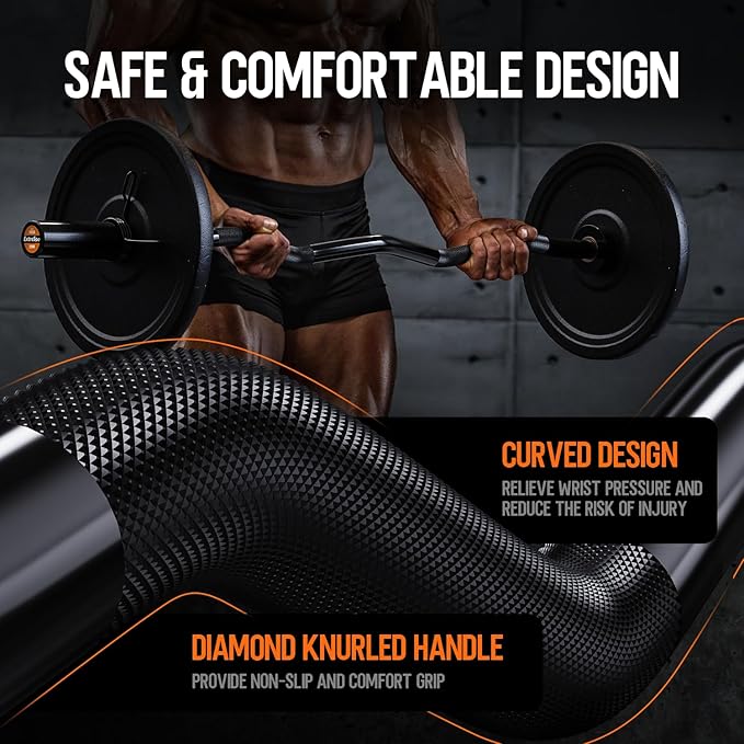 - DIAMOND KNURLING & NEEDLE ROLLER BEARING - The ExtreSpo EZ Bar's knurling provides superior grip, and the knurled surface is flat and not sharp, so you don't have to worry about your hands being punctured when lifting heavy weights. The design of needle roller bearing can rotate, with excellent stability, and it is easier to turn the wrist.