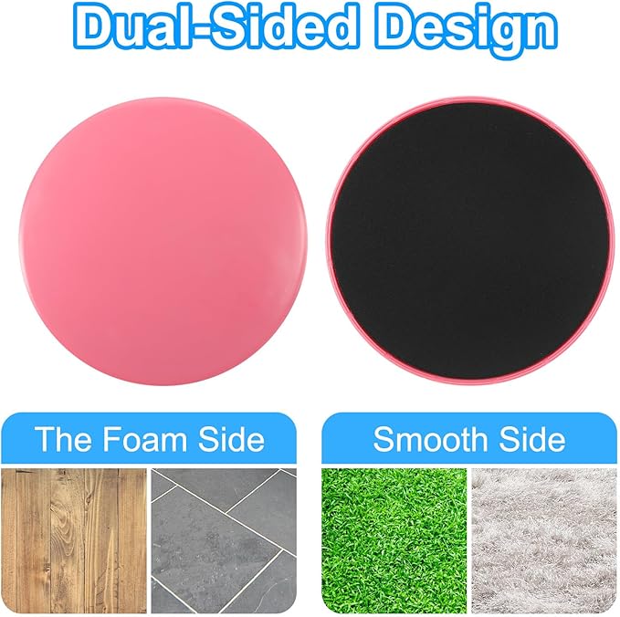 - Advantage: The exercise sliders are dual-sided and suitable for various occasions and surfaces. The ABS surface has high hardness and good abrasion resistance. The foam material side is anti-static, tear-resistant, and not easy to fall off.