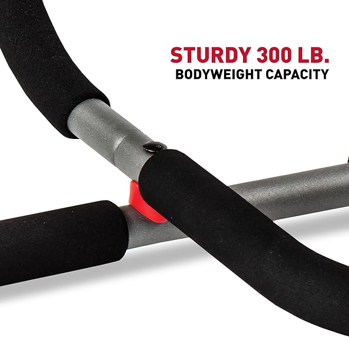 - Wide grip curved ergonomic handles offer three grip options for wide, close, and hammer grip pullups; padded handles ensure comfort for sit-ups, push-ups, and dips