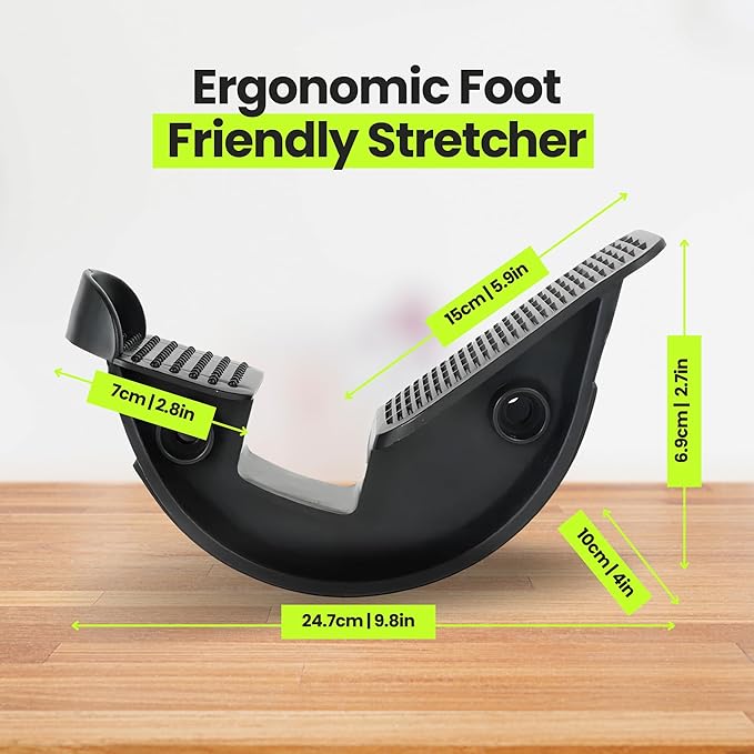 - Angled Foot Plate: The foot stretcher incorporates an angled foot plate to encourage the correct positioning of the foot during stretching exercises. This design helps align the foot in a way that optimizes the stretching motion and targets the intended muscle groups, such as the calf muscles and the plantar fascia.