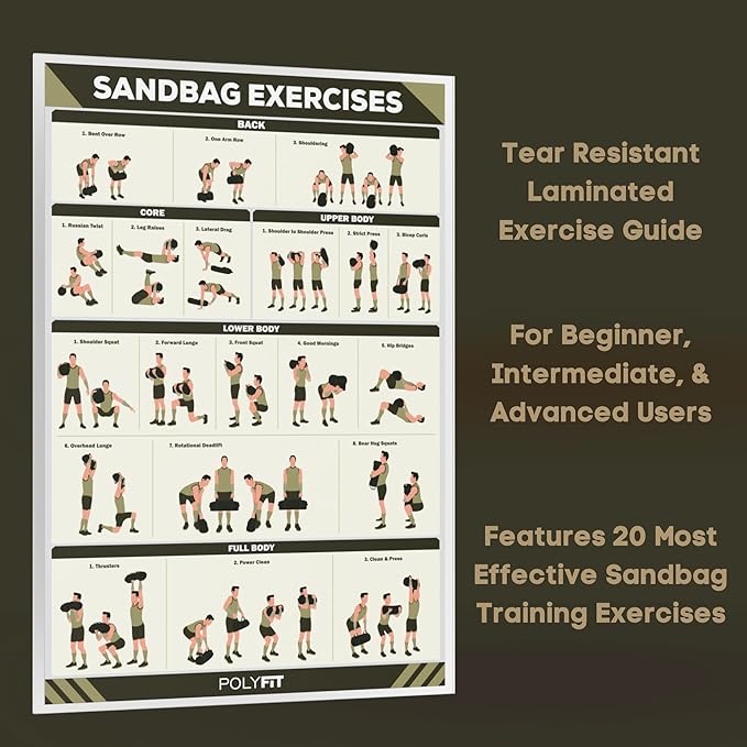 - 【LAMINATED SANDBAG EXERCISE GUIDE】A training sandbag is the best choice for anyone looking to change up their exercise routine. We've included a laminated sandbag exercise guide to help you get started. Complete beginners need not worry, plus we've added in some ideas for intermediate and advanced sandbag users.