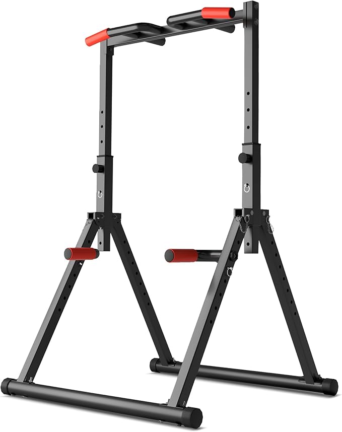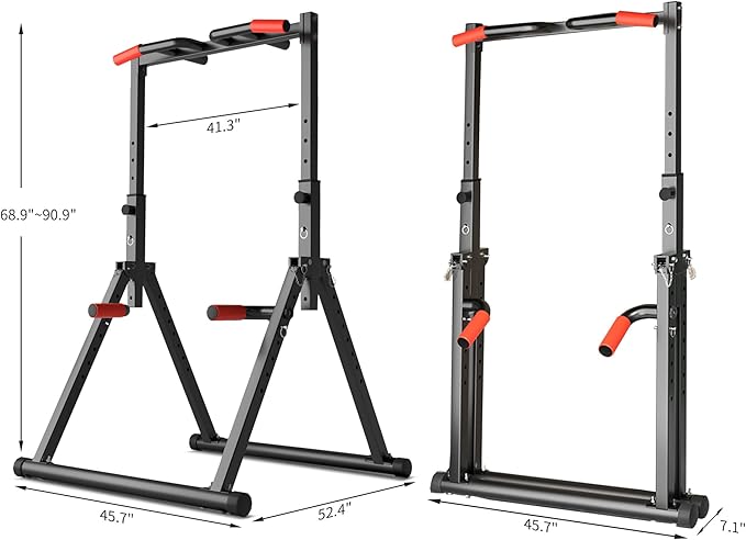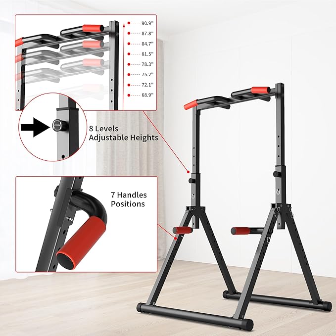 - 8 Height Adjustment Levels - The height of the dip bar station can be adjusted from 68.9" to 90.9". Simply turn the spinning knob to adjust height quickly and easily. Ideal home gym equipment for your whole family use.