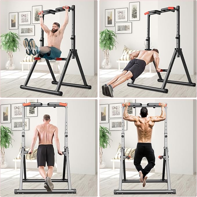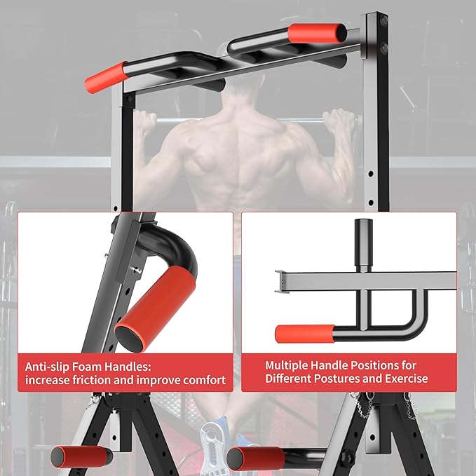 - Full-Body Exercise - Multiple handles in pull-up frame allows you to perform more postures and exercises. You can also change the dip handles position to do dips or push-up. Your best exercise partner for targeting different muscle groups.