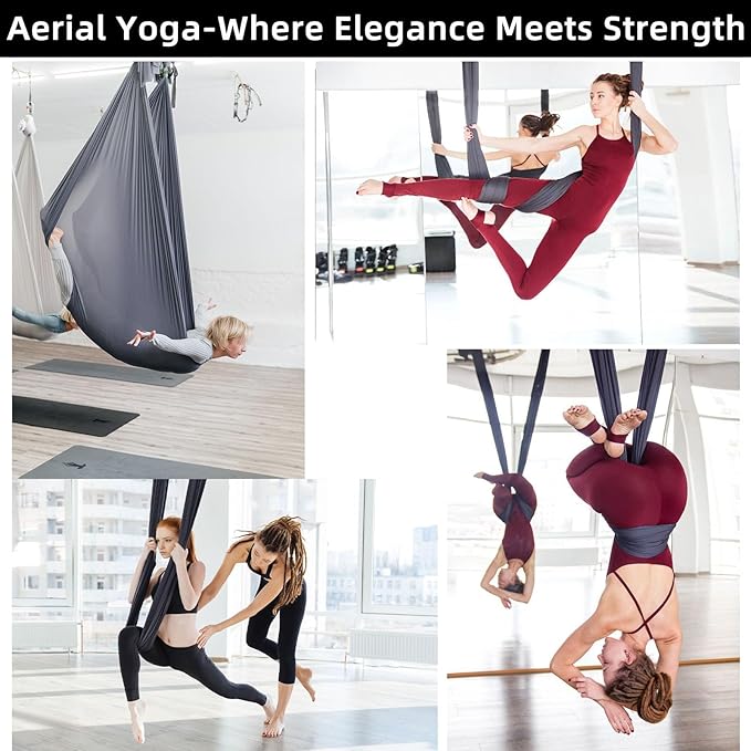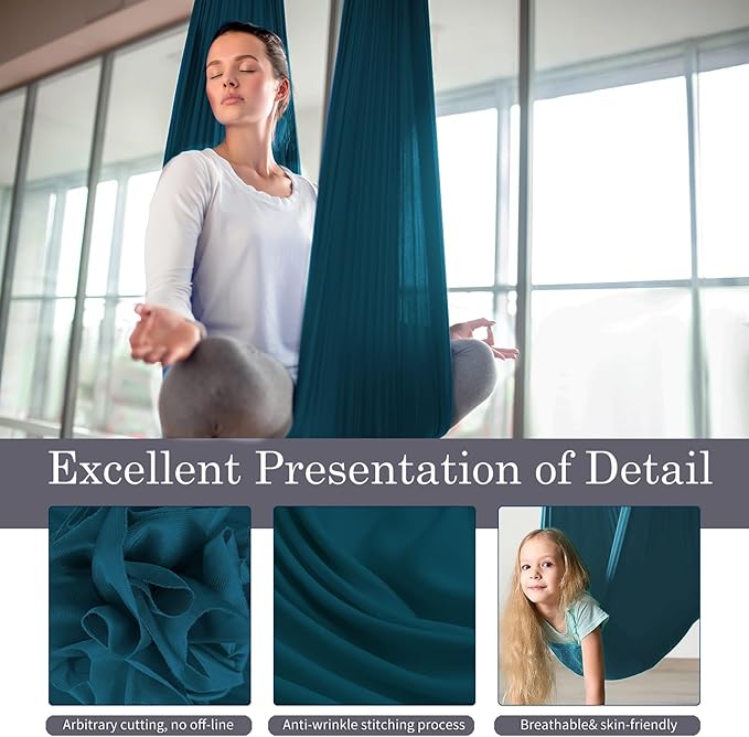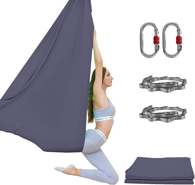 - Complete Aerial Yoga Kit- Our aerial hammock comes with everything you need to get started, including 2* 25KN steel screw-lock carabiners, 2* polyester daisy chains, 1* yoga cloth(5.5 yards x 3 yards), 1* instruction manual