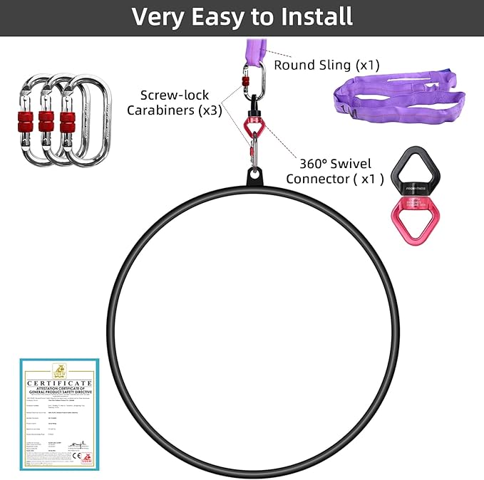 - 【Very Easy to Assemble】It only takes a few minutes to set up or pack up! We offer all of our aerial hoop equipment as a set to take to the gym, studio, or any performance venue.