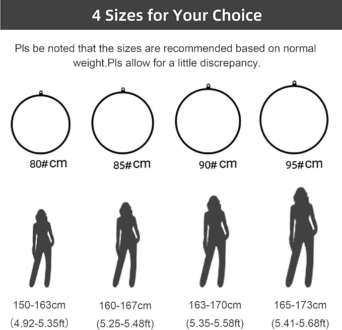 - 【4 Sizes for Choice】25mm Grip Size is perfect for performances, tricks, and drops. Suitable for aerialists who are comfortable with the smaller handgrip.32mm Grip is thicker than standard, and provides a more comfortable grip for beginners or those transitioning from pole fitness .Select the size of the aerial hoop diameter: 31 inches (800 mm) diameter, 33 inches (850 mm) diameter, 35 inches (900 mm) diameter, 37 inches (950 mm) diameter