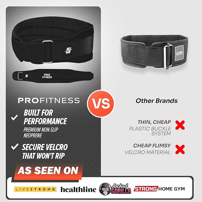 - WITH A STRONG, QUICK LOCKING BUCKLE - Don't risk your body and results to a subpar belt - trust the lifting belt squat belt women and men use everyday to achieve their lifting goals! Weight training belt should promote confidence, and that's what ProFitness promotes every day with our belt gym.