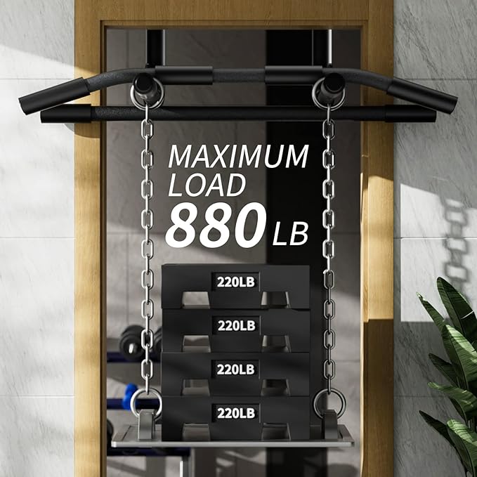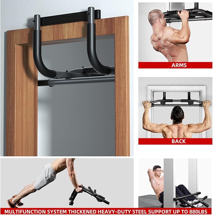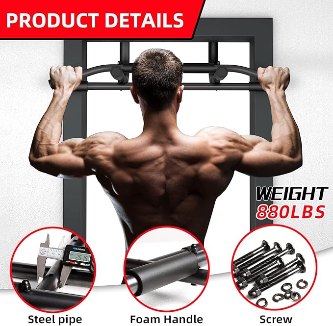 - Super Quality - AOAOGYM pull up bar for doorway is made of thickened refined steel pipes which can bear up to 880lbs and the fine powder coating to prevent rust and corrosion. Carbon fine steel with diameter of 25mm and thickness of 1.5mm is adopted, which is durable and will not deform.