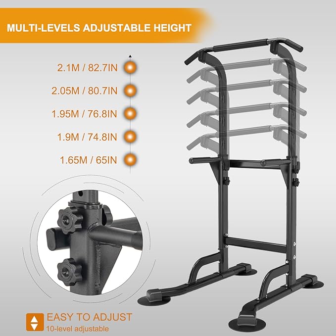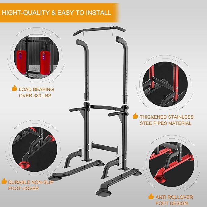 - 【Multifunctional Design】:It is a multifunctional power tower that supports vertical knee lifts, push-ups, and pull-ups, which helps to tone and target your arms, core, shoulders, and chest.