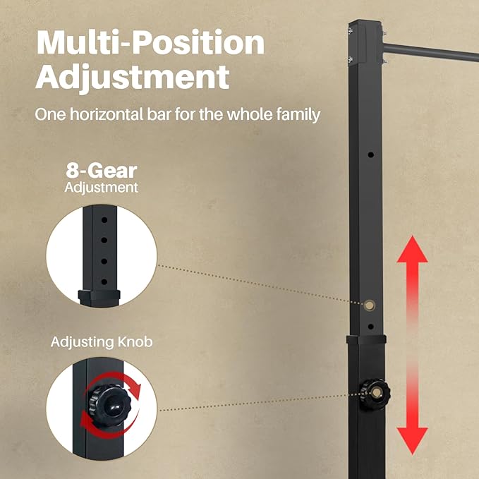 - 【8 ADJUSTABLE POSITIONS】Pull-ups have 8 levels of adjustment, with a minimum height of 59inch and a maximum height of 85inch, and a hole spacing of 1.97inch. Pull up bar station can be used by adults and children at home.