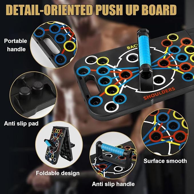 - FOLDABLE AND ADJUSTABLE PUSH UP BOARD: The push up board can be folded, and you can put the push up handle into it, even making it very convenient to hold. Whether you are at home, in the office, or in the gym, you can enjoy exercising anytime and anywhere with it.