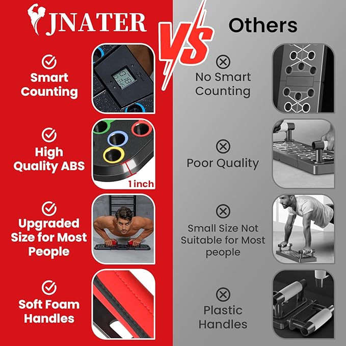 - 【TRACK YOUR FITNESS 】-- JNATER pushup board features smart counting and time function (included 2 *AAA batteries). Just open the button to count and time automatically. Stay informed with the push up progress that make you more focus on perfecting form and achieve your fitness goals more effectively.