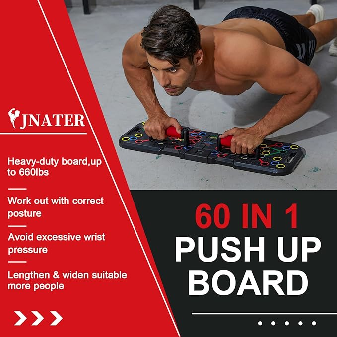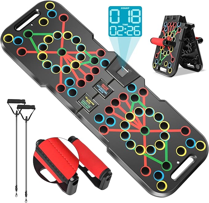 - 【A New Method for Muscle Building】--Upgraded Push up board specifically designed to strengthen upper body. Push up bar with color-coded guided to bring up to 60 positions to activates 50% more muscles growth and increasing strength & definition in arms, shoulders, chest, back, and abs. Come with pull ropes to boost your workout.