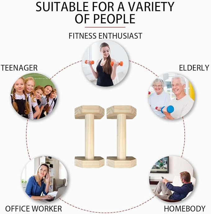 - [Material & Size]: Solid Pine The durable pine material can absorb sweat and create a non-slip and cushioning effect. 25 cm push-up bars model can support a weight of about 150 kg.