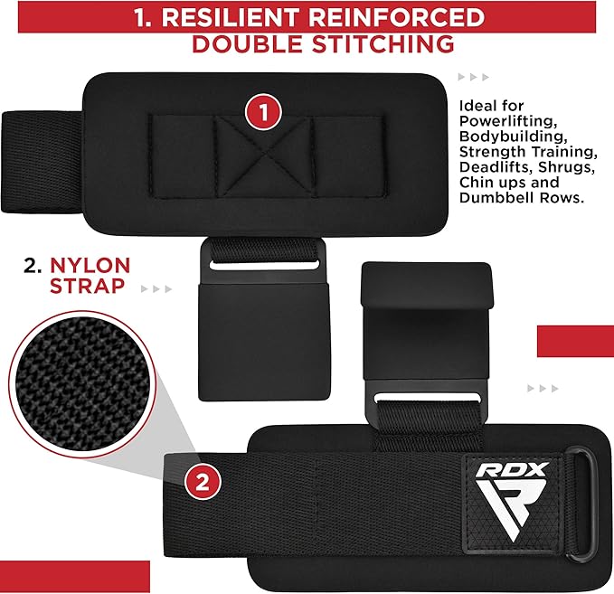 RDX Weight Lifting Hooks Straps Pair 7mm Neoprene