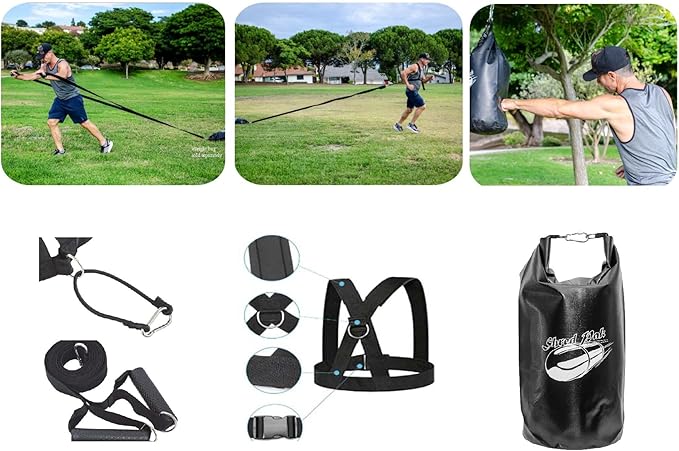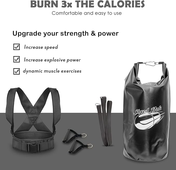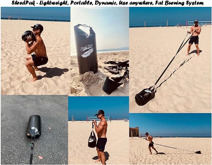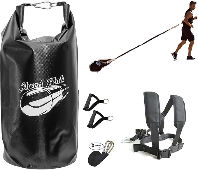 - SHRED THE FAT: ShredPak's full body resistance workout equipment kit guarantees a killer workout using a tested weighted resistance training system. Hook the weight bag sled to your harness & add water, sand, gym weight, or any kind of weight to the weight bag to supercharge your exercise routine. Our agility training kit is made of durable material, easy to use, portable, and allows you to switch up your routine for a revolutionary training experience.