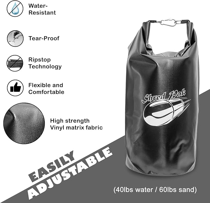 - SHRED THE FAT: ShredPak's full body resistance workout equipment kit guarantees a killer workout using a tested weighted resistance training system. Hook the weight bag sled to your harness & add water, sand, gym weight, or any kind of weight to the weight bag to supercharge your exercise routine. Our agility training kit is made of durable material, easy to use, portable, and allows you to switch up your routine for a revolutionary training experience.