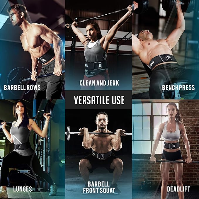 - Versatile : The weight waist belt is versatile as they can be used for front and back squats, olympic lifting, bodybuilding, powerlifting, deadlifting, barbell rows, weighted carries, overhead press, bench press, snatch and cross training