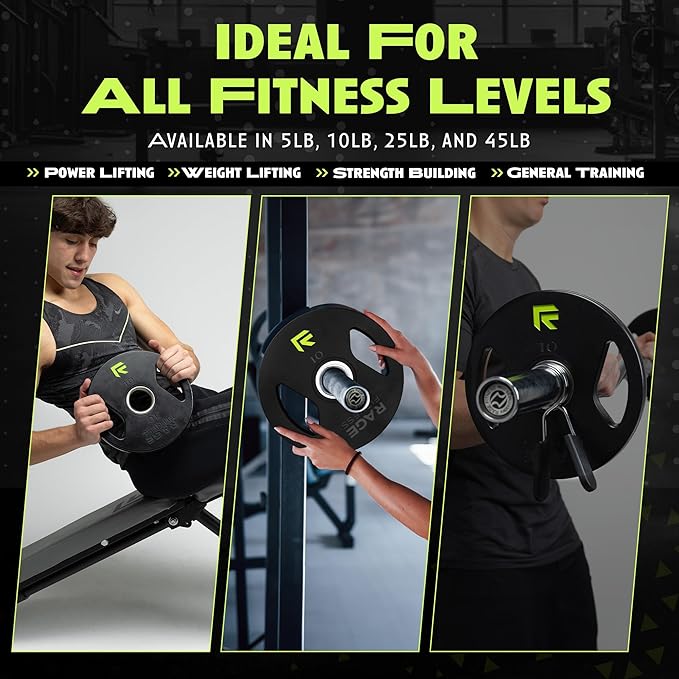 - NOISE-REDUCTION: Take your workout experience to the next level with Rage Cast Iron Weight Plates. The heavy-duty rubber construction reduces noise during lifts and drops so you can focus on your training without distractions. Ideal home gym plates.